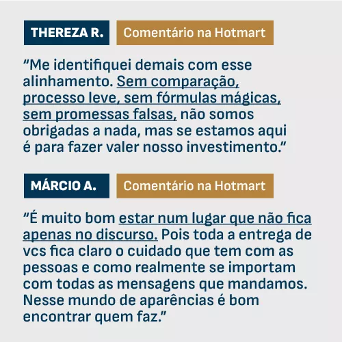 Assim que a sua compra for aprovada você receberá um email de boas-vindas com todas as informações, seu login e senha para o Circle (ferramenta que usamos na comunidade). Fica bem tranquilo(a) porque a gente vai te acompanhar em toda a jornada.